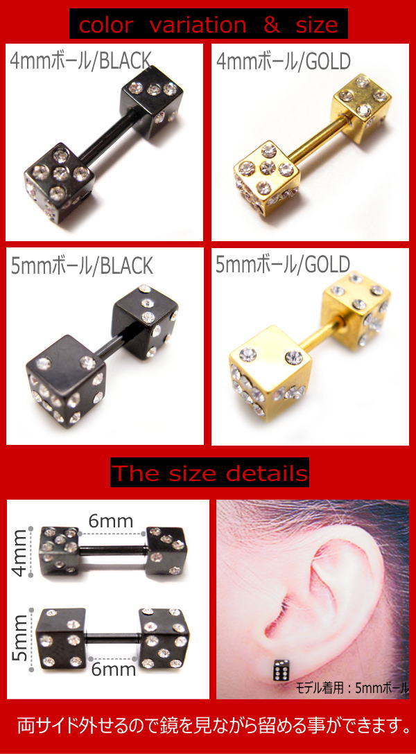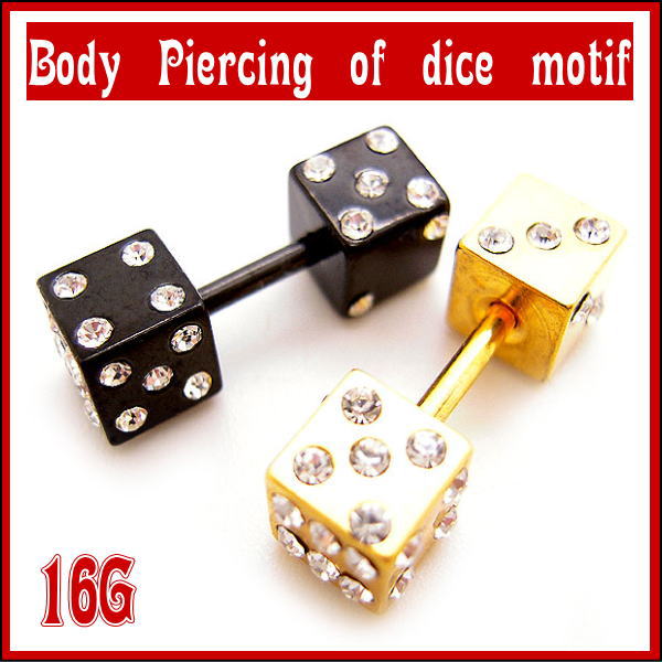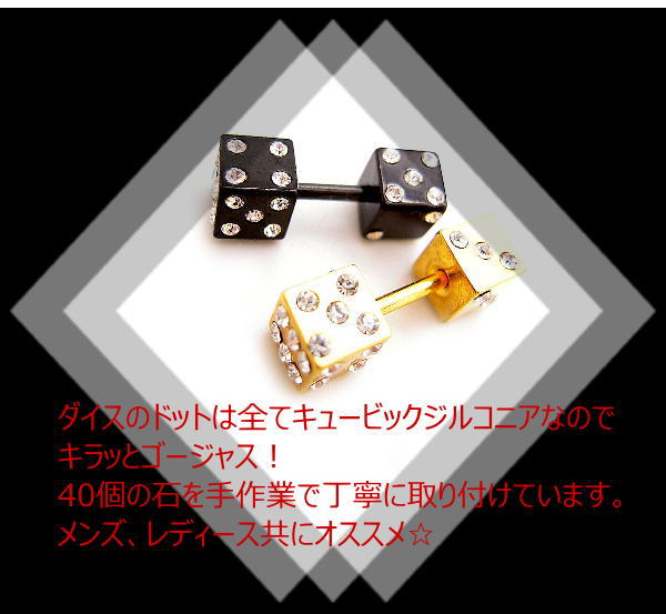 ダイス サイコロ ストレートバーベル 16G ボディピアス ボディーピアス トラガス 軟骨ピアス CZ ブラック ゴールド