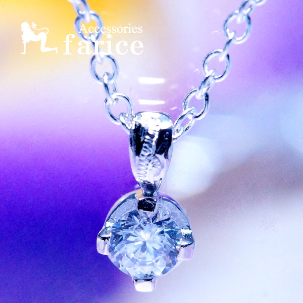 ★ハワイアンジュエリーでは珍しいワンストーンデザインの直径4mmのクリアキュービックジルコニアを使ったレディースシルバー925・チャーム型ペンダントネックレス