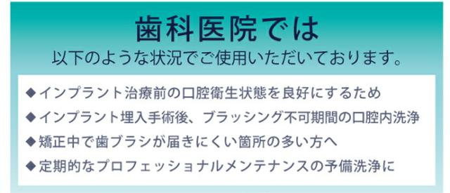 お口の中は人それぞれ歯のはえかた、角度など様々です。しかし歯ブラシは一人一人の構造に合わせて作られているわけではないのでどうしても磨き残しがあったり、通常のブラッシングでは届かない部位が出てきます。そこでリキッドであるデンタル露ウォッシュで虫歯や歯周病の原因となるお口の中のたんぱく質を固めて除去します。