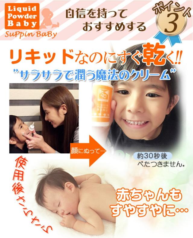 1、リキッドタイプのベビーパウダー、舞い上がらない&塗りやすい