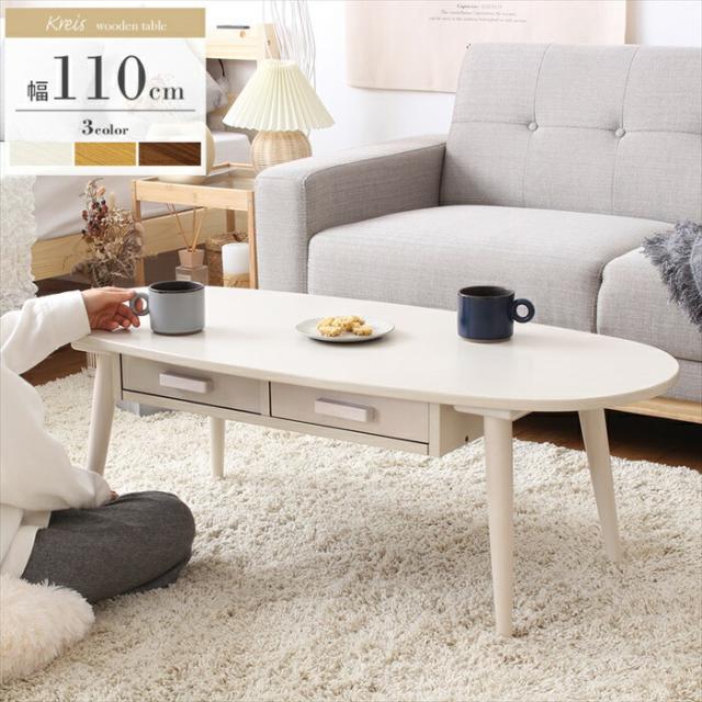 【値下げ】ローテーブル 引き出し付き テーブル 北欧 引き出し 幅110 引き出し付きリビングテーブル Kreis クライス Lサイズ
