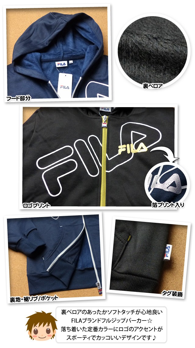 【送料無料】男児 ジュニア アウター フルジップ パーカー FILA フィラ 裏ベロア ソフトタッチ ブランドロゴ 子供服 男の子