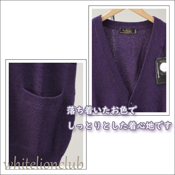 メンズ カシミヤ100% Vネック カーディガン 紫 無地 古希 喜寿 お祝い S/M/L/LL