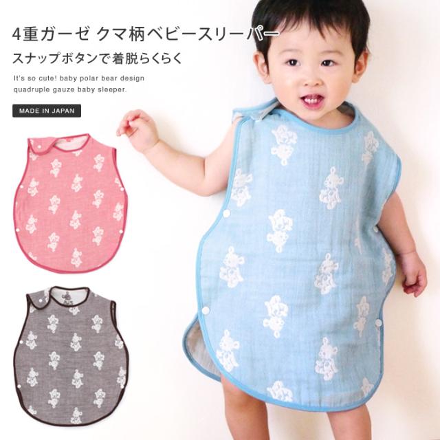 スリーパー ベビー 赤ちゃん 4重ガーゼ クマ柄 出産祝い 日本製