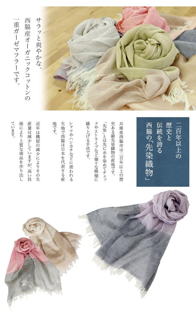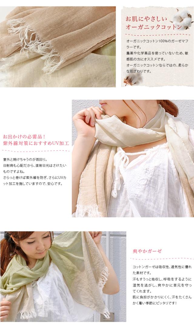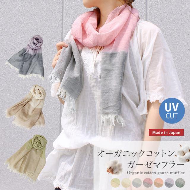 マフラー UVカット オーガニックコットン ガーゼ 1重 日本製