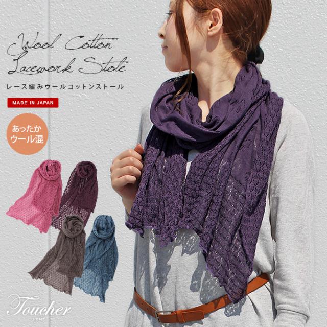 ヒオリエ/hiorie/タオル/日本製/レース編み/ウール/コットン/ストール/レディース/ニット/すかし編み/日本製