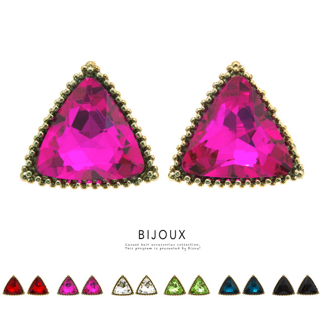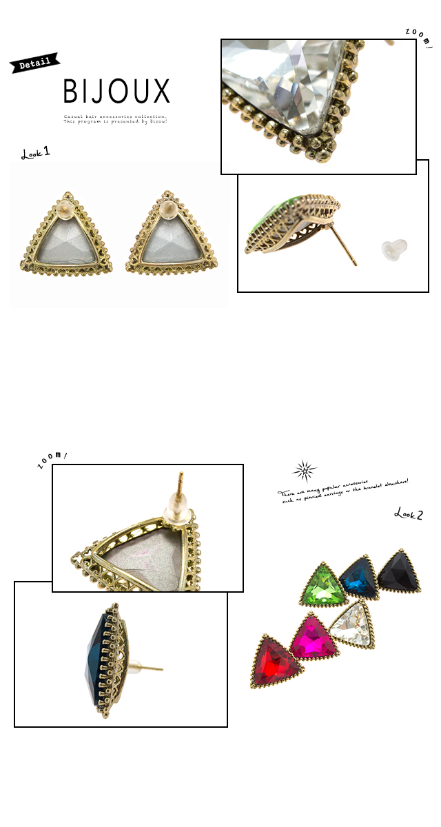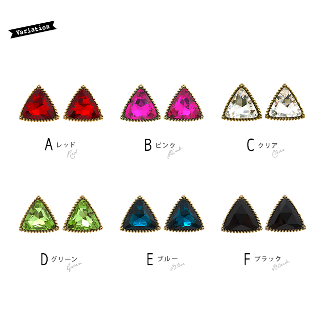 【レトロ感があるビジューがおしゃれなピアス】スタッドピアス/三角/トライアングル/アンティーク風/宝石/キラキラ/耳飾り/アクセサリー
