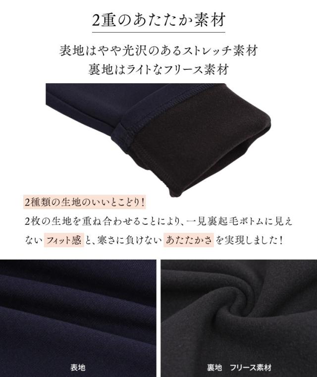 1日で1000本売れた、大人気の裏起毛レギパン。ストレッチ感抜群のツルっとした素材の内側に、暖かい裏起毛素材を貼り付けた二重仕様。裏起毛でも着膨れしにくく、フロントポケットはフェイクなのでゴワつきもなし◎。