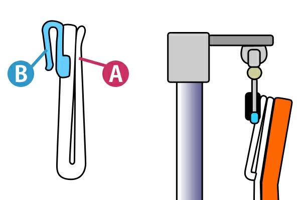 本品付属のSカンを使用して本品単体でご使用いただけます。また、元々あるカーテンと一緒にご使用いただく際は、カーテンフックの長いツメ(A)を本品のフック穴に通し、さらに普段ご使用のカーテンを取り付け2枚を重ねた状態で短いツメ(B)をカーテンランナーに取り付けてください。