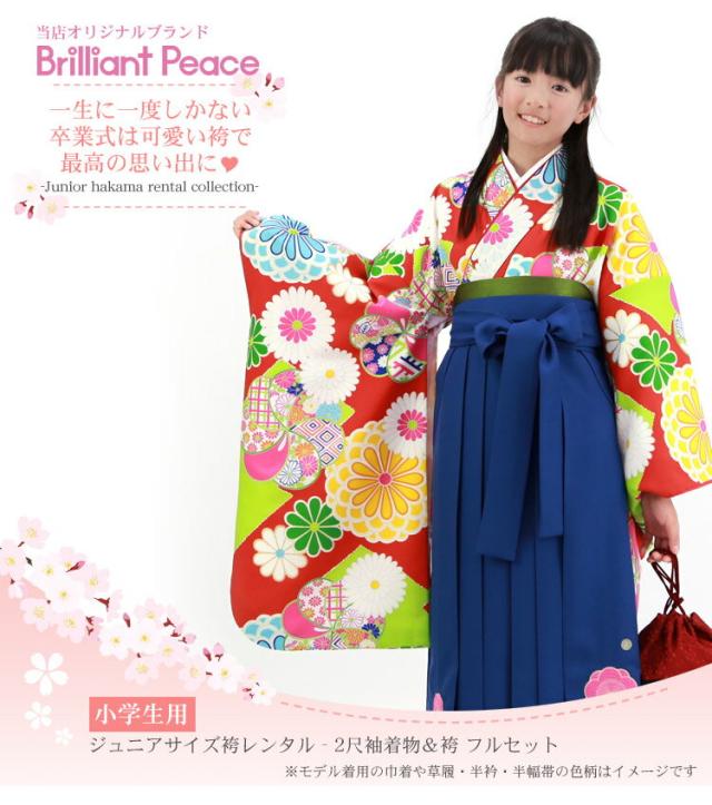 【7泊8日レンタル】卒業式 袴 小学生 レンタル 女の子 レトロ「ブリリアントピース ジュニア卒業式袴レンタルセット」オリジナル BP