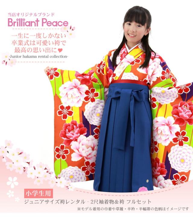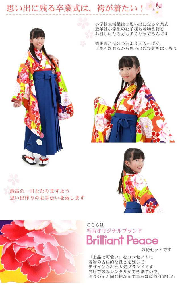 【7泊8日レンタル】卒業式 袴 小学生 レンタル 女の子 レトロ「ブリリアントピース ジュニア卒業式袴レンタルセット」オリジナル BP