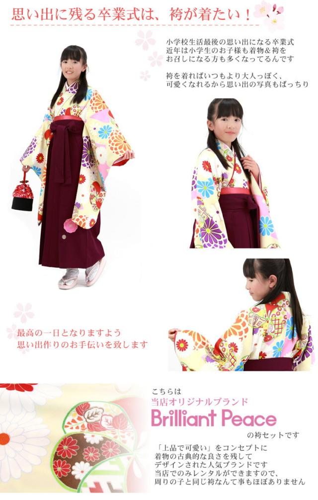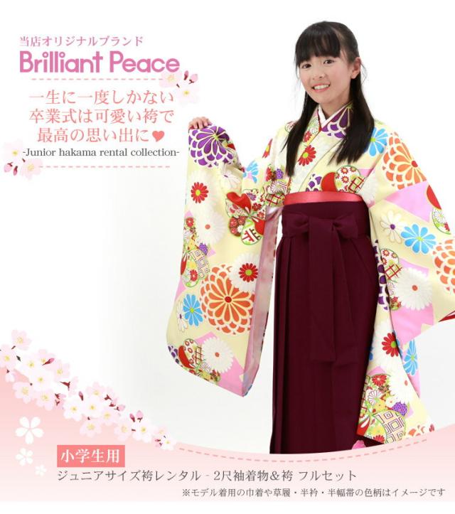 【7泊8日レンタル】卒業式 袴 小学生 レンタル 女の子 レトロ「ブリリアントピース ジュニア卒業式袴レンタルセット」オリジナル BP
