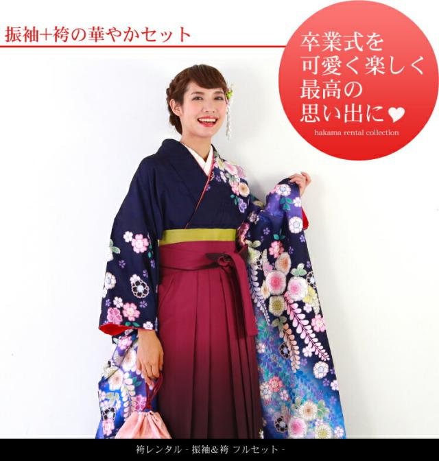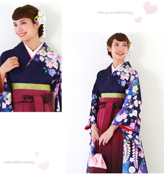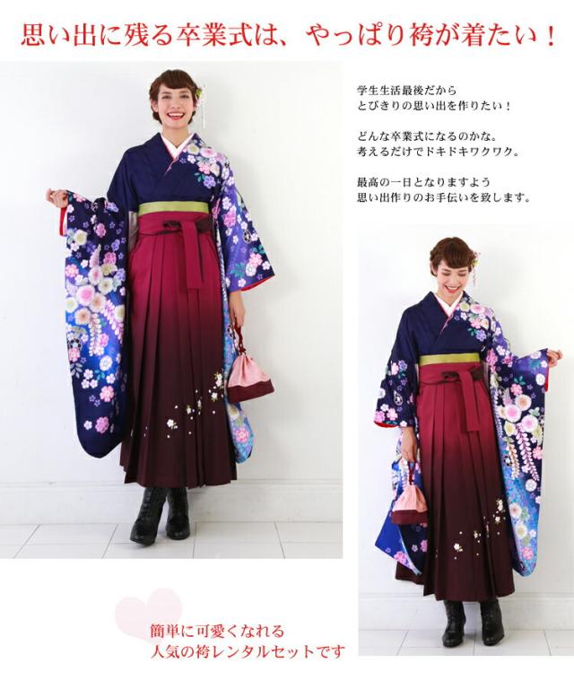 卒業式 袴 レンタル袴セット卒業式袴セット 着物&袴 フルセットレンタル「青紫地に青・紫ぼかし花と藤」