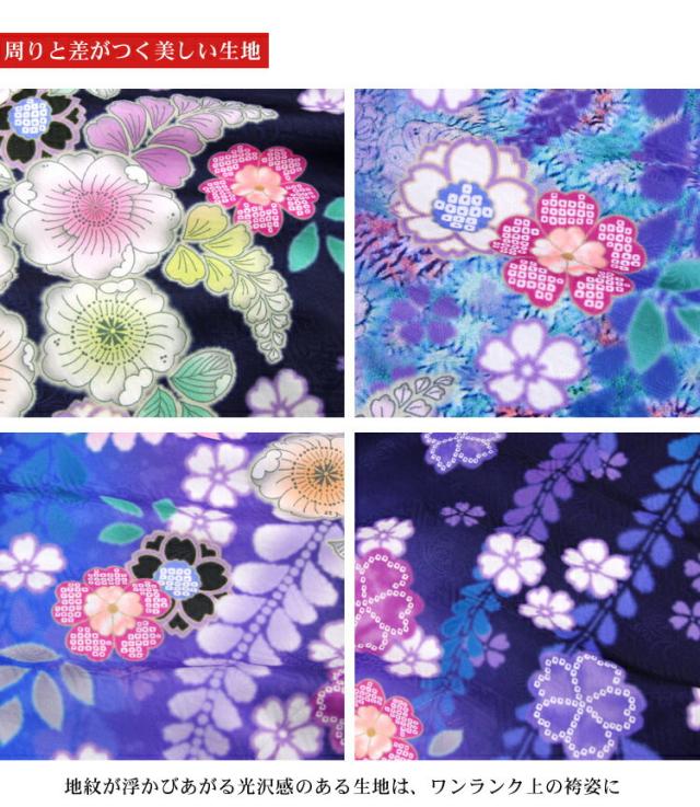 | ※モデル着用の巾着・半巾帯・重ね衿・草履の色、デザインはイメージです。 数ある中から呉服のプロがコーディネートしてお届け致します。 ※着物の柄の配置は写真とまったく同じではございません。 | |||