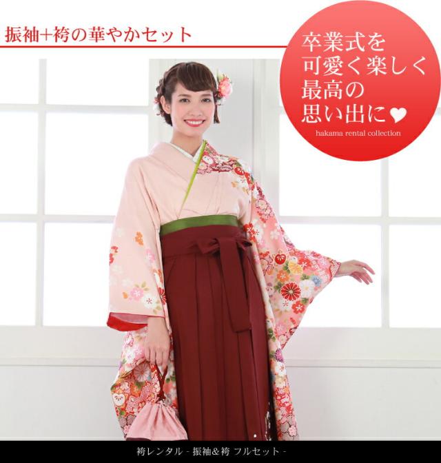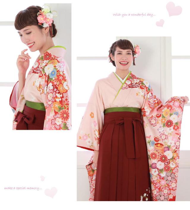 卒業式 袴 レンタル袴セット卒業式袴セット 着物&袴 フルセットレンタル「薄ピンク地にカラフル丸菊と小花」