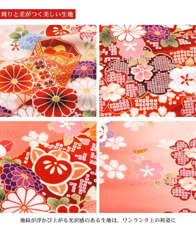 | ※モデル着用の巾着・半巾帯・重ね衿・草履の色、デザインはイメージです。 数ある中から呉服のプロがコーディネートしてお届け致します。 ※着物の柄の配置は写真とまったく同じではございません。 | |||