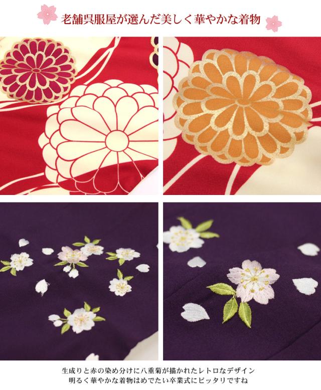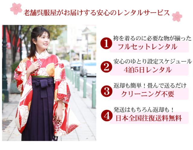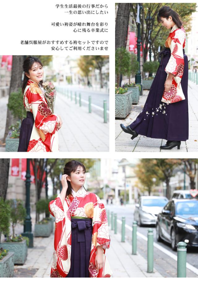 卒業式 袴 レンタル袴セット卒業式袴セット2尺袖着物&袴 フルセットレンタル「生成りと赤の染め分けにレトロ八重菊 モダン」
