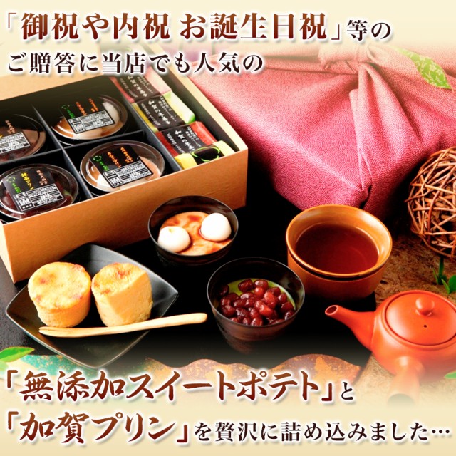 お年賀にも人気♪ 無添加 スイートポテト5個と加賀プリン6個set ギフト 高級風呂敷付き 詰め合わせ cool