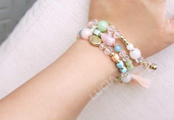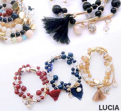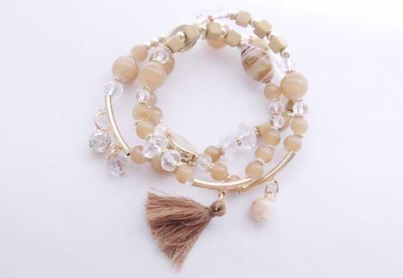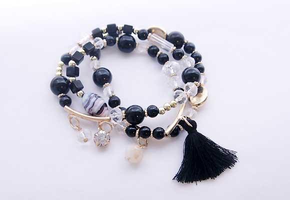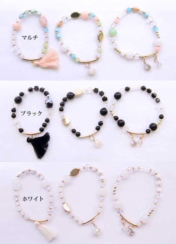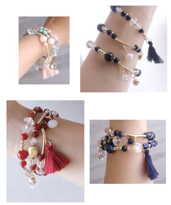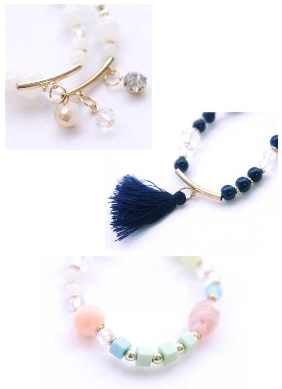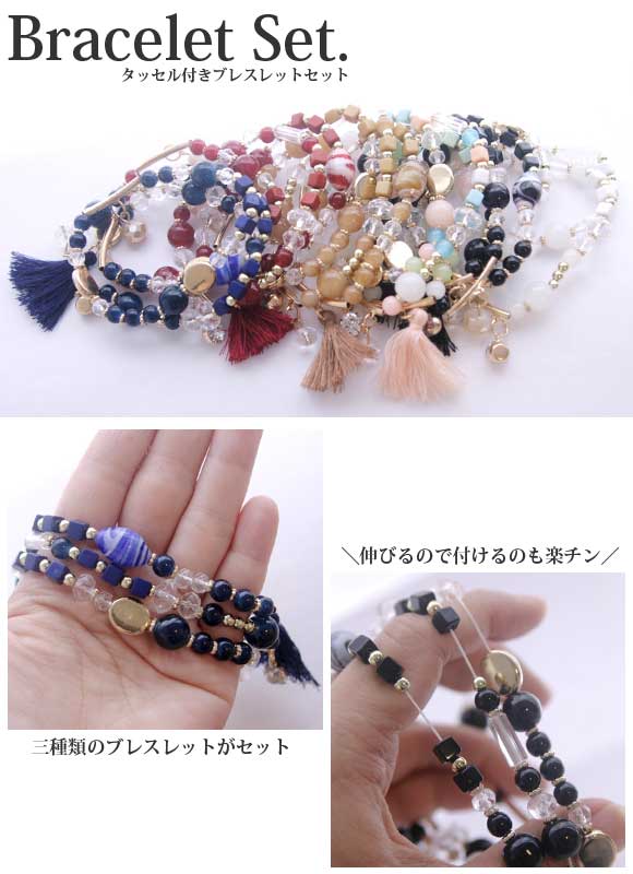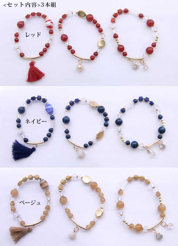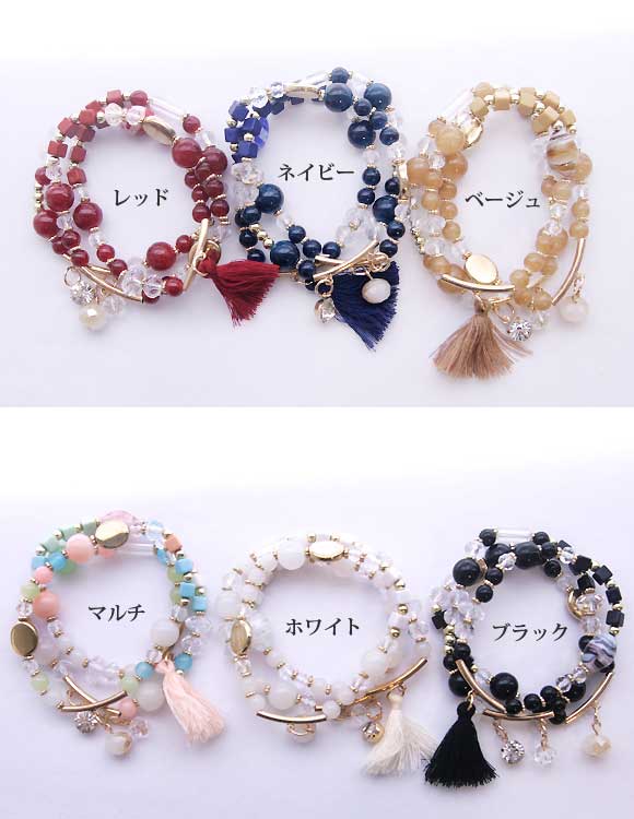 本日P2倍 ブレスレット タッセル 天然石風 3連ブレスレット 大人カラー 多重セット レディース ブレス