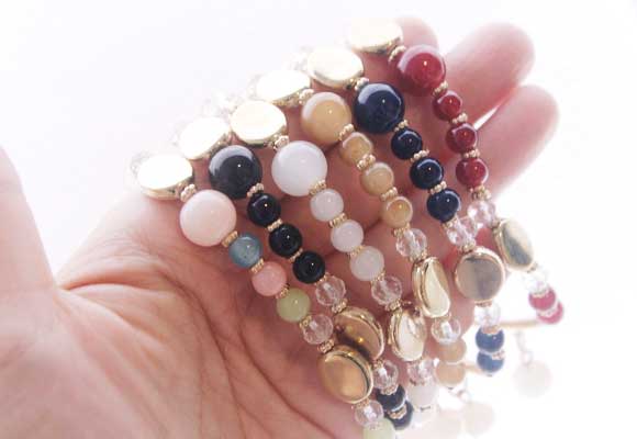 大人っぽい落ち着いた色味がお洒落なブレスレットのセットです。