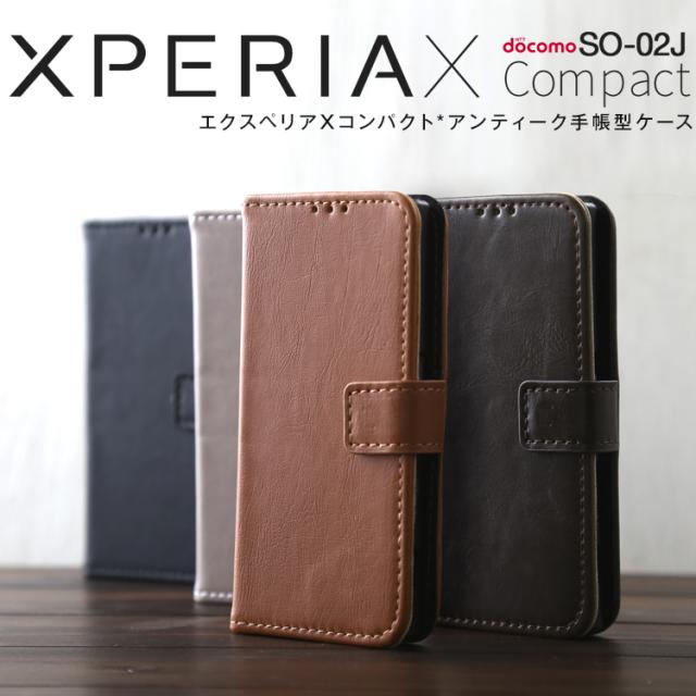 スマホケース XperiaX Compact SO-02J アンティークレザー手帳型ケース 携帯カバー 携帯ケース
