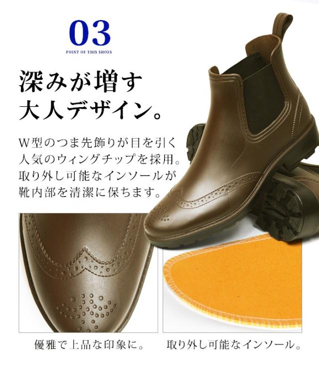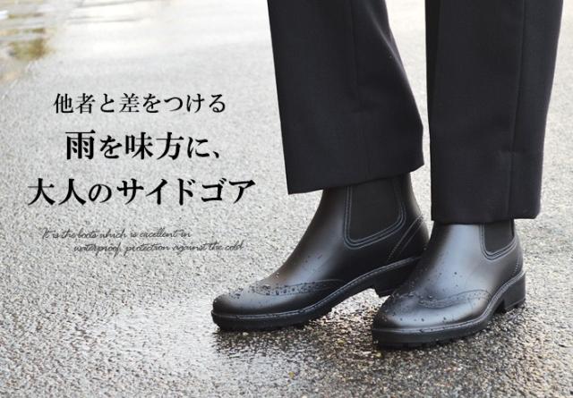 サイドゴアタイプの完全防水ブーツが入荷!見た目や質感など、ラバーには見えない仕立てながら 雨の日など、不快になりがちな足元をしっかりカバー!サイドには伸縮性があるサイドゴアを採用することで、脱ぎ履き楽々!また、つま先に飾りのあるウィングチップが優雅で上品な印象に。雨の日だけでなく、普段使いからビジネスシーンまで使い回しのしやすいアイテムです。