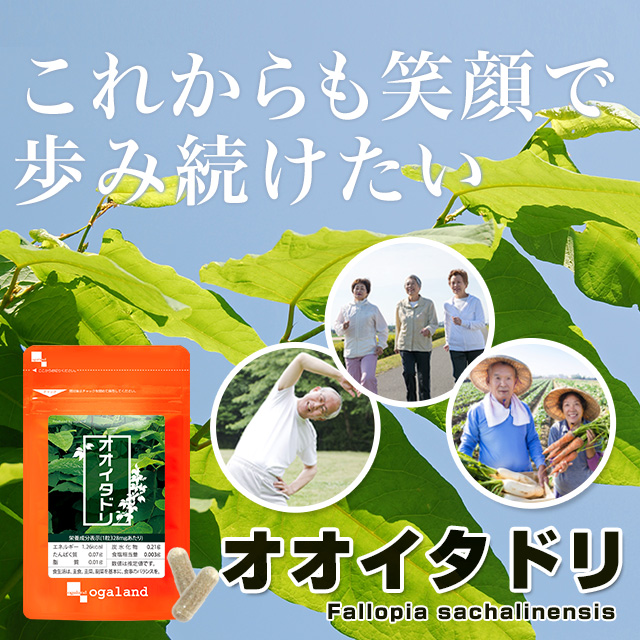 主要原料(1カプセルあたり):オオイタドリエキス末・デキストリン 120mg / 緑イ貝エキス末 20mg