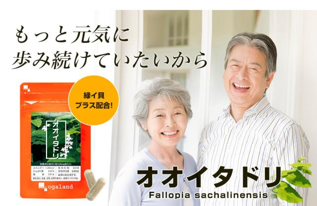 主要原料(1カプセルあたり):オオイタドリエキス末・デキストリン 120mg / 緑イ貝エキス末 20mg