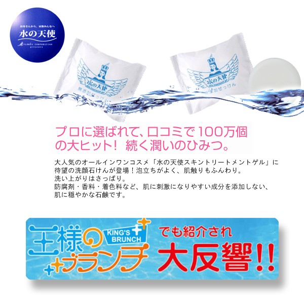 ●大人気のオールインワンコスメ「水の天使スキントリートメントゲル」に待望の洗顔石けんが登場!泡立ちがよく、肌触りもふんわり。洗い上がりはさっぱり!