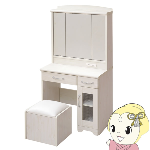 三面鏡 ドレッサー カントリー 収納 3面鏡 メイク台 鏡台 化粧台 姫 スツール付き 北欧 おしゃれ ホワイト