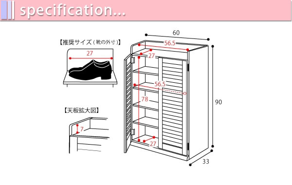 | 本体サイズ | [外寸] 幅60.0×奥行33.0×高さ90.0cm [内寸] (扉内)幅56×奥行27×高さ78cm (オープン部)幅56×奥行27×高さ7cm |