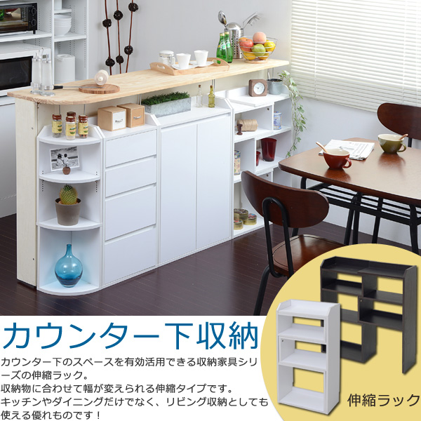 カウンター下収納 薄型 スライドラック おしゃれ シンプル 高さ80 カウンター下 リビングチェスト リビング オープンラック 伸縮ラック
