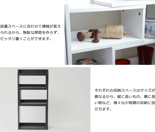 お好みの幅に伸縮可能なラック。