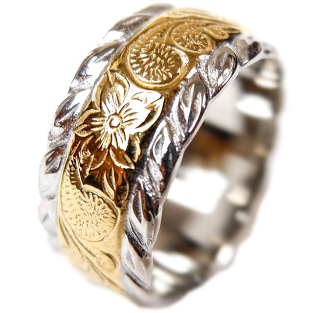 送料無料 刻印可能 ハワイアンジュエリー リング メンズ 指輪 イエローゴールド ステンレス ラッピング対応 アレルギー対応 ペアリング セットにも