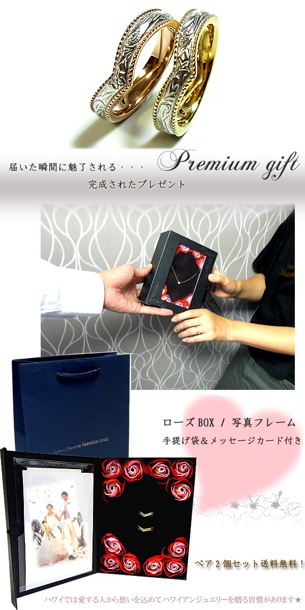 送料無料 ペアハワイアンジュエリー ペアリング プレゼント 結婚指輪 マリッジリング 入浴剤 写真フレーム ラッピング対応 アレルギー対応