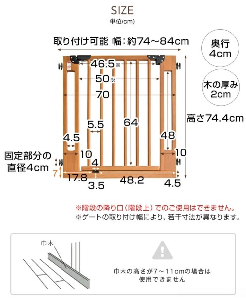 | 取り付け可能幅74〜84×奥行4×高さ74.4cm |