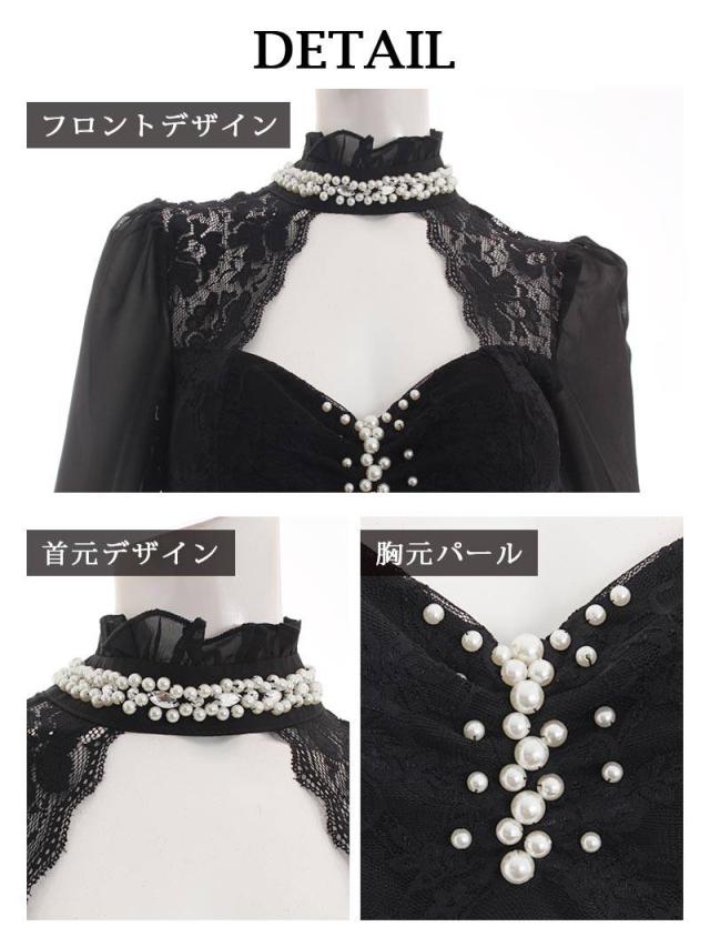 ☆バストカットから覗く谷間魅せとハイネック部分のフリルとパールがお客様の視線集中間違いなしのミニドレス♪