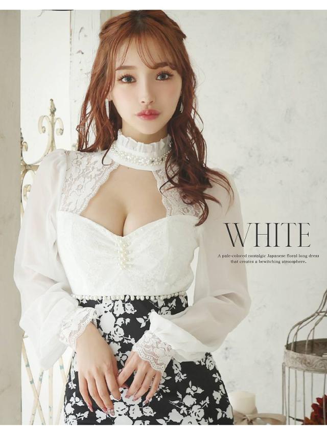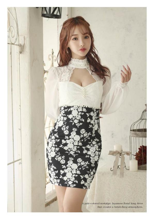 ☆モノトーンの花柄ドレスだから大人上品を演出できるタイトキャバドレス♪
