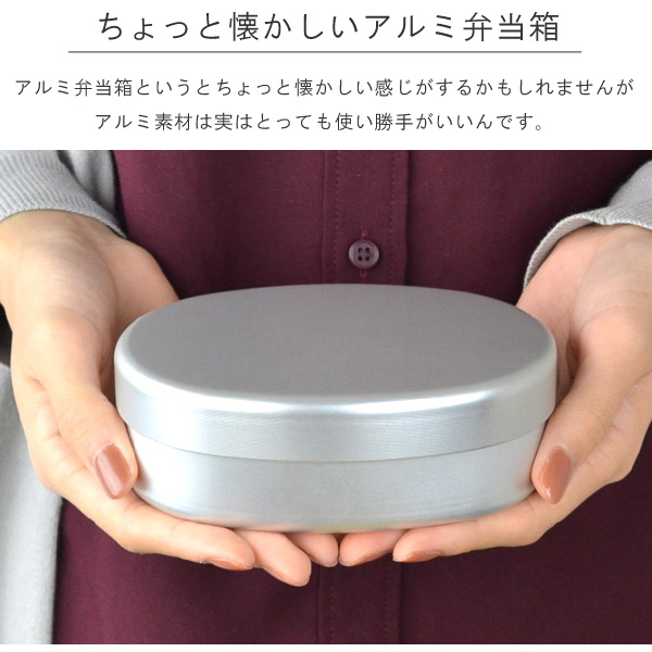 ![]() ![]() ![]() ![]() ![]() 軽くて丈夫で、飽きが来ないデザイン使い勝手が良く、シンプルで飽きのこないデザインのアルミのお弁当箱です。 素材がアルミニウムなので、軽くて壊れにくく、丈夫で長持ちします。お弁当箱の表面にはアルミの強度を上げるためにアルマイト加工が施されています。使い込むほどに良さが出てくるので長くお使いいただけます。取り外し可能な仕切り・内フタつきで、安心の日本製です。 汚れ落しが簡単サビになりにくかったり傷もつきづらい丈夫なアルミのお弁当箱は、におい移りが少なく油汚れも落ちやすいので、お手入れもカンタンで衛生的です。 ![]() | ||