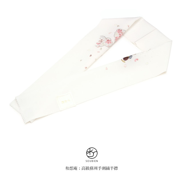 半襟 刺繍 白 半衿 オフホワイト 桜 花咲爺 昔話 伽話 童話 手刺繍 蘇州刺繍 正絹 カジュアル 和装小物 女性 レディース 送料無料