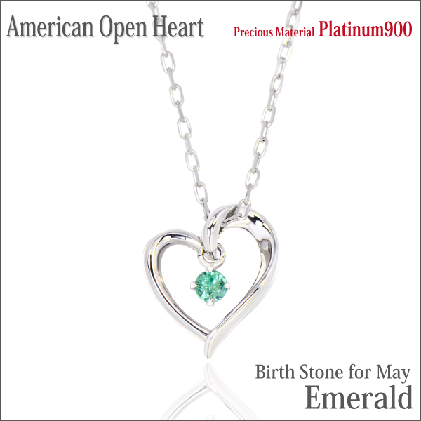 エメラルド ネックレス 送料無料 Pt900プラチナ オープンハート アメリカンスタイル ペンダント チェーン 付 宅配便