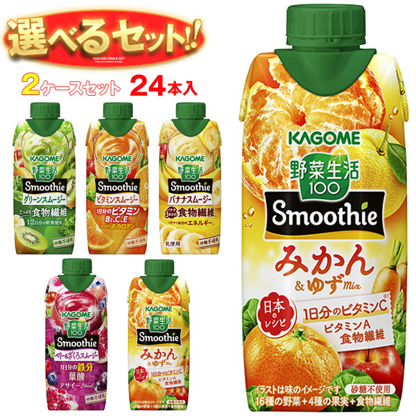 カゴメ 野菜生活100 Smoothie(スムージー) 選べる2ケースセット 330ml紙パック×24(12×2)本入| 送料無料 よりどり 選り取り ギフト ミックスジュース 野菜ジュース スムージー