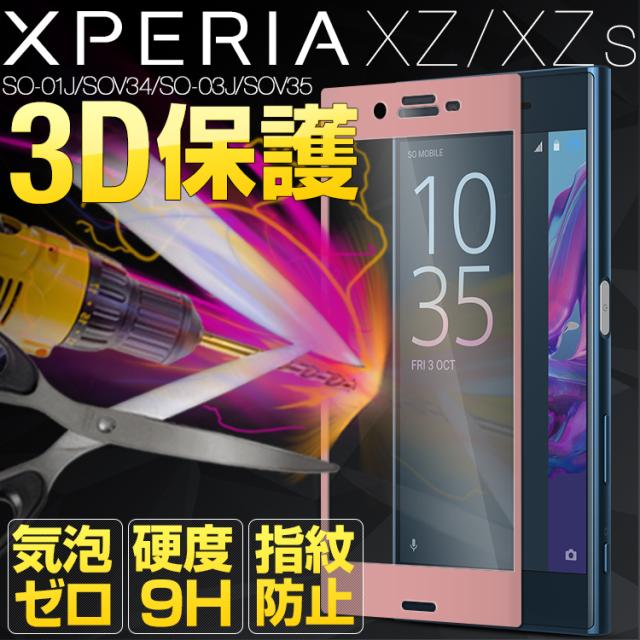 スマホフィルム XperiaXZ/XZs カラー強化ガラス保護フィルム SOV34 SOV35 SO-01J SO-03J 9Hエクスペリア xperia xz フィルム 強化ガラスフィルム
