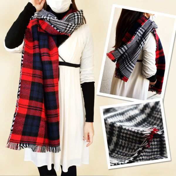 ・人気のあるチェック柄デザインの厚手大判ストールをご用意しました。
