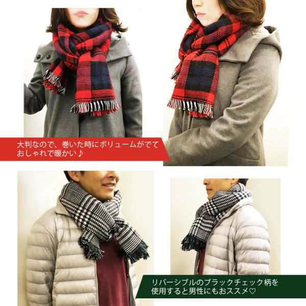 大判ストール 肌寒い 春 大判 ストール チェック柄 リバーシブル 男女兼用 防寒 厚手 マフラー 送料無料