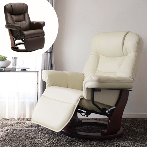 パーソナルチェア/リクライニングチェア 〔オットマン一体型〕 張地:合成皮革/合皮 肘付き 『ニース』 アイボリー 【北海道・沖縄・離島配送不可】