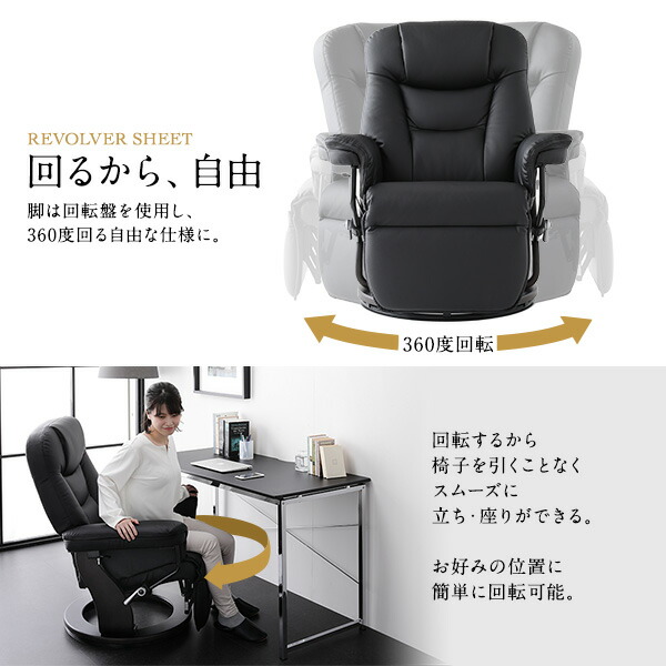 背・オットマンは別々にリクライニングして固定できます。