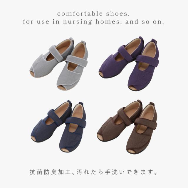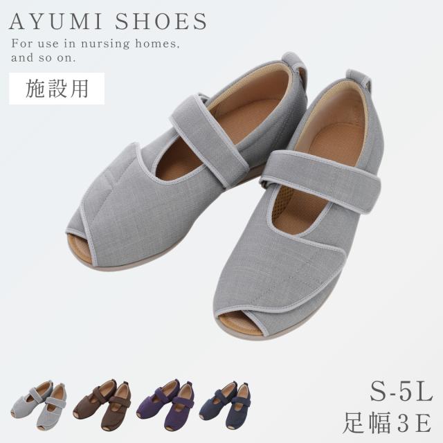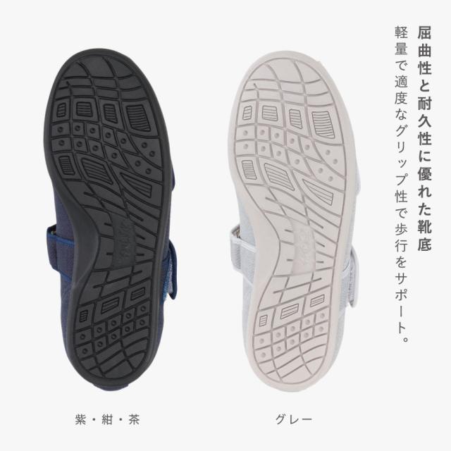 ケアシューズ,ルームシューズ,スリッパ,室内,室内履き,室内用,シニア,メンズ,レディース,男性,女性,撥水,抗菌,防臭,洗える,手洗い,手洗い可能,滑り止め,すべり止め,滑りにくい,入院,病院,リハビリシューズ,靴,シューズ,あゆみ,徳武産業,あゆみシューズ,介護シューズ,介護靴,高齢者,お年寄り,男性用,女性用,紳士用,婦人用,介護施設,デイサービス,デイケア,介護,介護用品,デイサービス,老人ホーム,施設,施設用,ヘルパー,家,家用,部屋用,履きやすい,履かせやすい,脱ぎ履きしやすい,脱ぎ履き,簡単,歩きやすい,動きやすい,疲れにくい,脱げにくい,締め付けない,しめつけない,締めつけない,ゆったり,ソフト,クッション,やわらかい,柔らかい,履き心地,快適,心地よい,気持ちいい,フィット,ギフト,プレゼント,敬老の日,母の日,父の日,誕生日,誕生日プレゼント,クリスマス,おすすめ,オススメ,人気,おしゃれ,お洒落,オシャレ,むくみ対応,つま先なし,つま先,オープン,マジックテープ,マジックバンド,パープル,紫,グレー,ブラウン,茶,ブルー,青,S,M,L,LL,3L,4L,5L,3E,