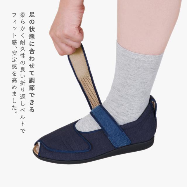 フィット感、安定感を高める折り返しベルトになっています。足の状態に合わせて調節可能です。