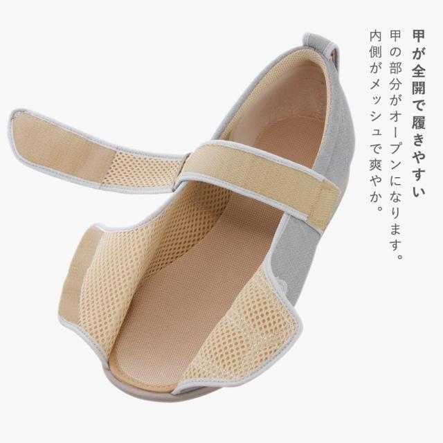 履きやすさナンバーワン!フルオープンで履きやすく履かせやすい。つま先が全開するとともに甲と足首2つのベルトが履き心地を安定させてくれます。